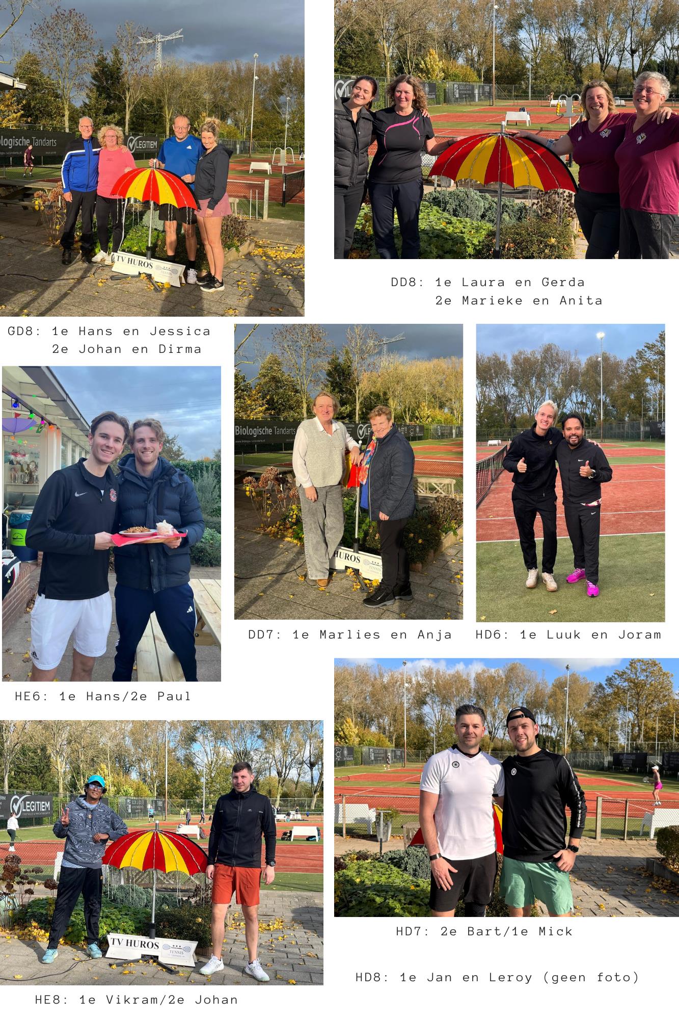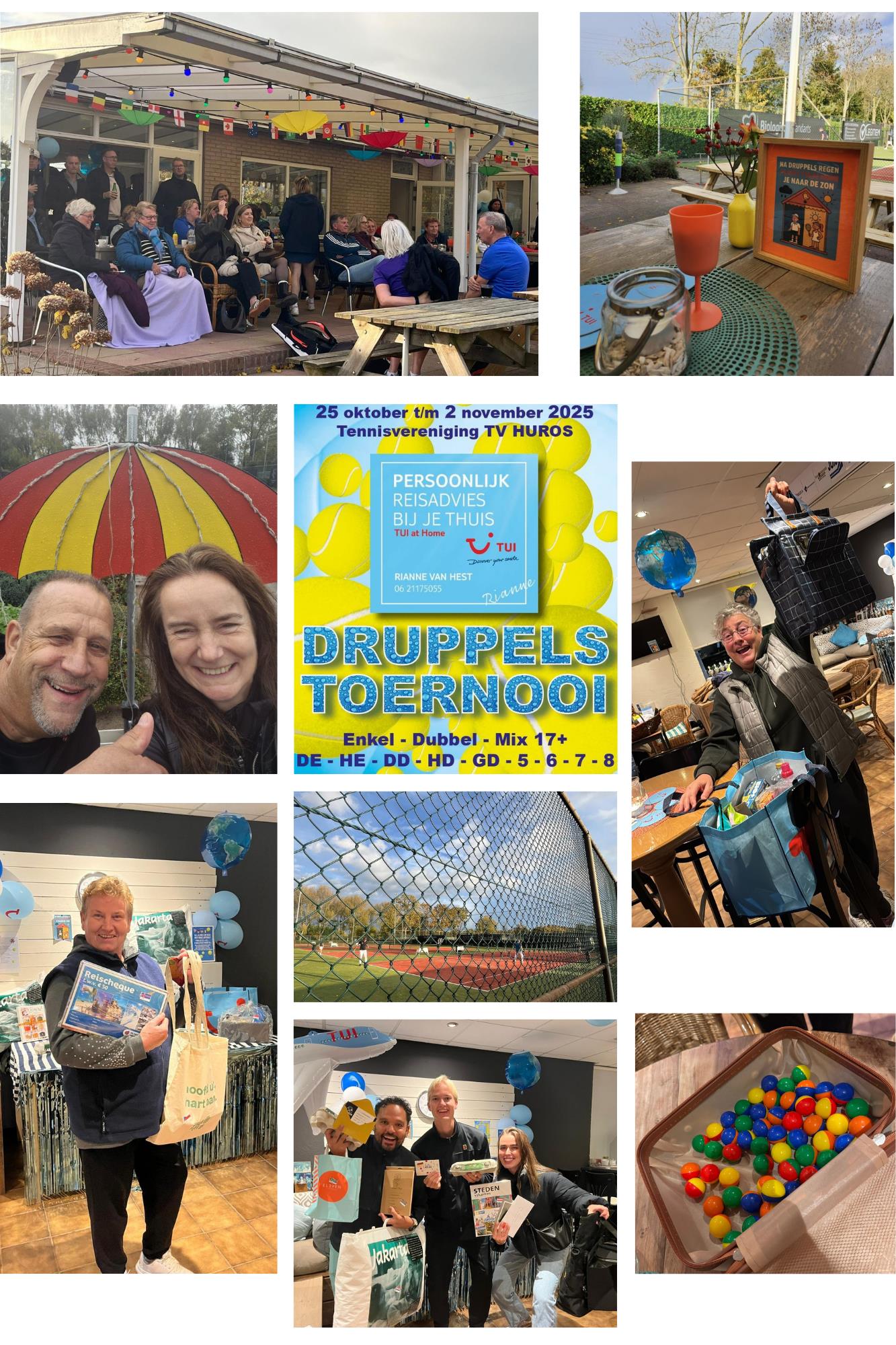 Zondag 2 november was de finaledag van het jaarlijkse Druppelstoernooi. Na een week met sterk wisselvallig weer was het fijn om een zonnige finaledag te hebben. Het terras zat dan ook vol met toeschouwers en deelnemers die genoten van de wedstrijden. Zie voor foto's de collage.